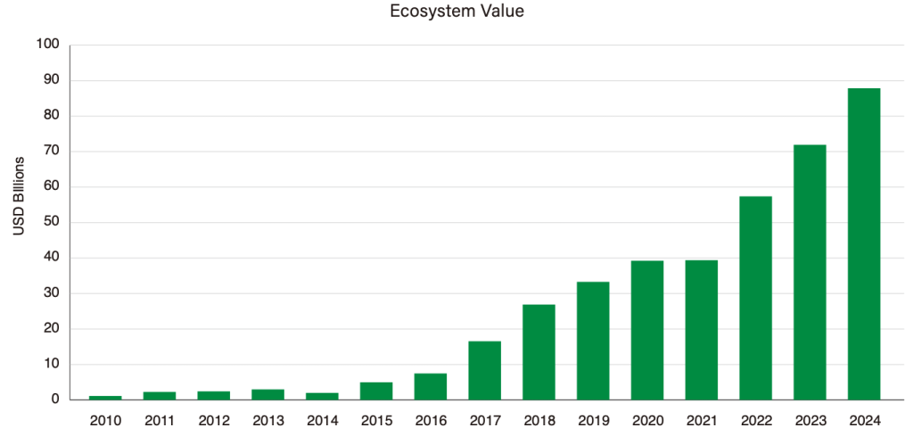 Figure 1.Hong Kong startup ecosystem value trend is uniformly and strongly positive